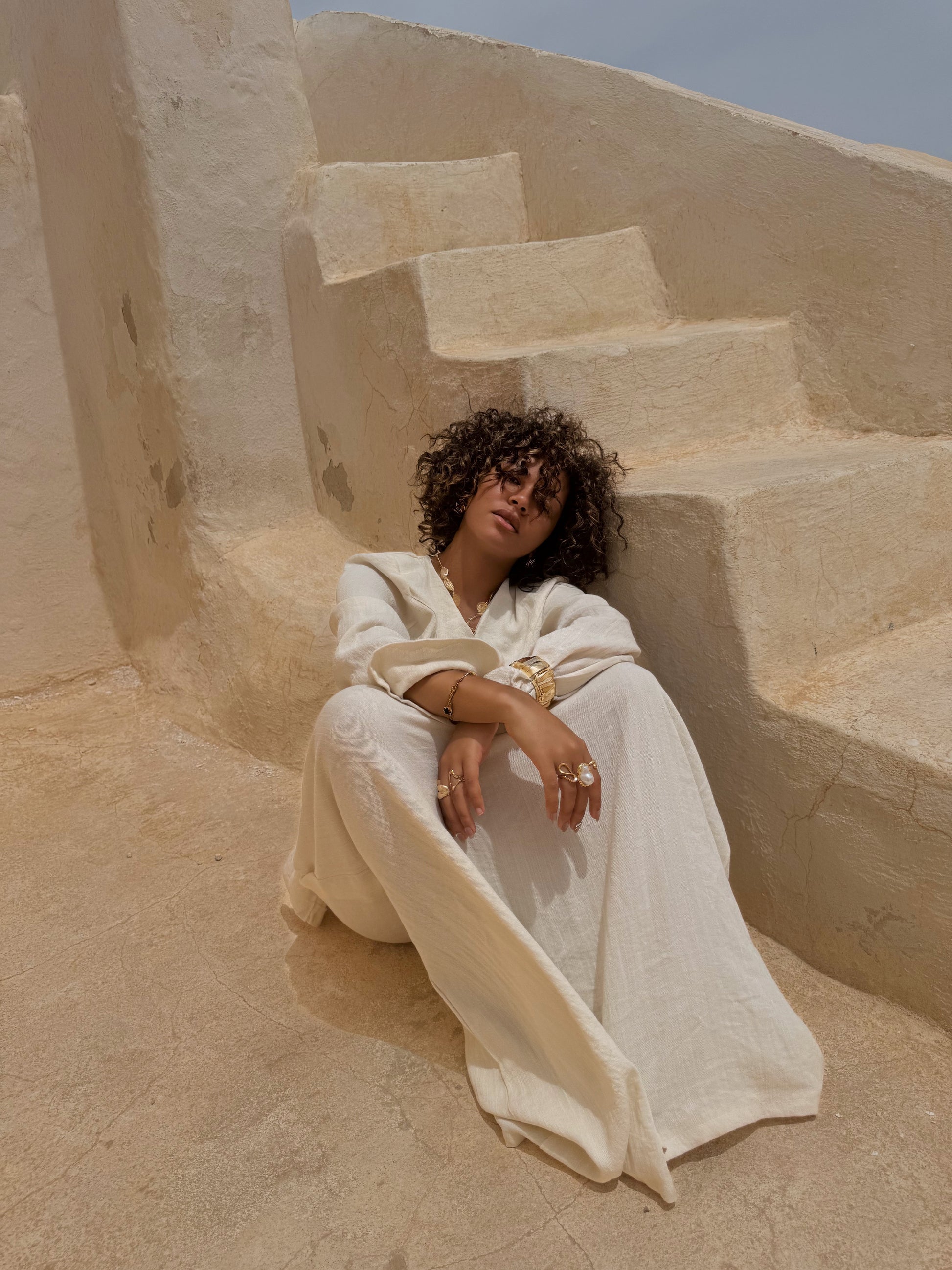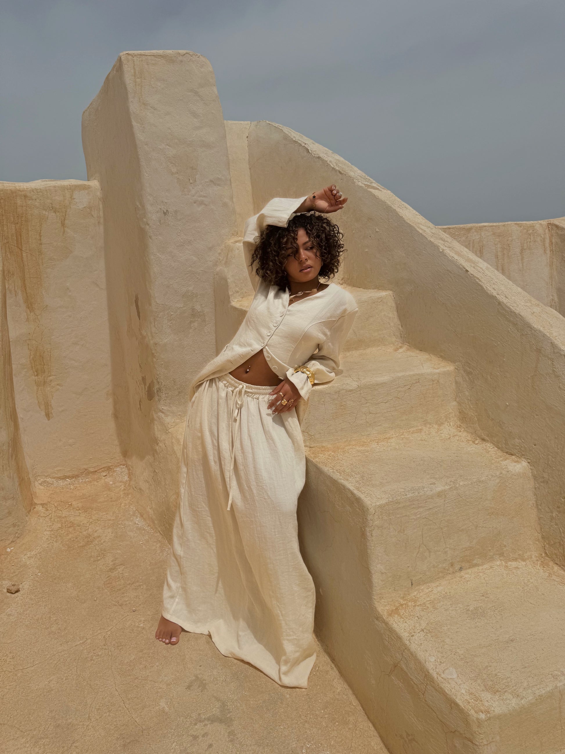 L'ensemble en lin léger et élégant. Idéal pour les journées ensoleillées, cet ensemble en lin allie confort et raffinement.